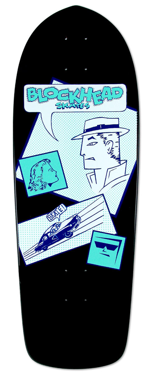 In 1985, somewhere right around my 21st birthday I launched Blockhead in my parents Nor-Cal garage with 3 models, Streetstyle, Chaos and Rebel. As a fan of old mobster and crime movies, Dick Tracy etc. I inked the Rebel graphic with the thugs in the car shouting “SKATE!” (Alan Chilton inked that first Blockhead logo). It was one of my first experiments with graphic design and screen printing.