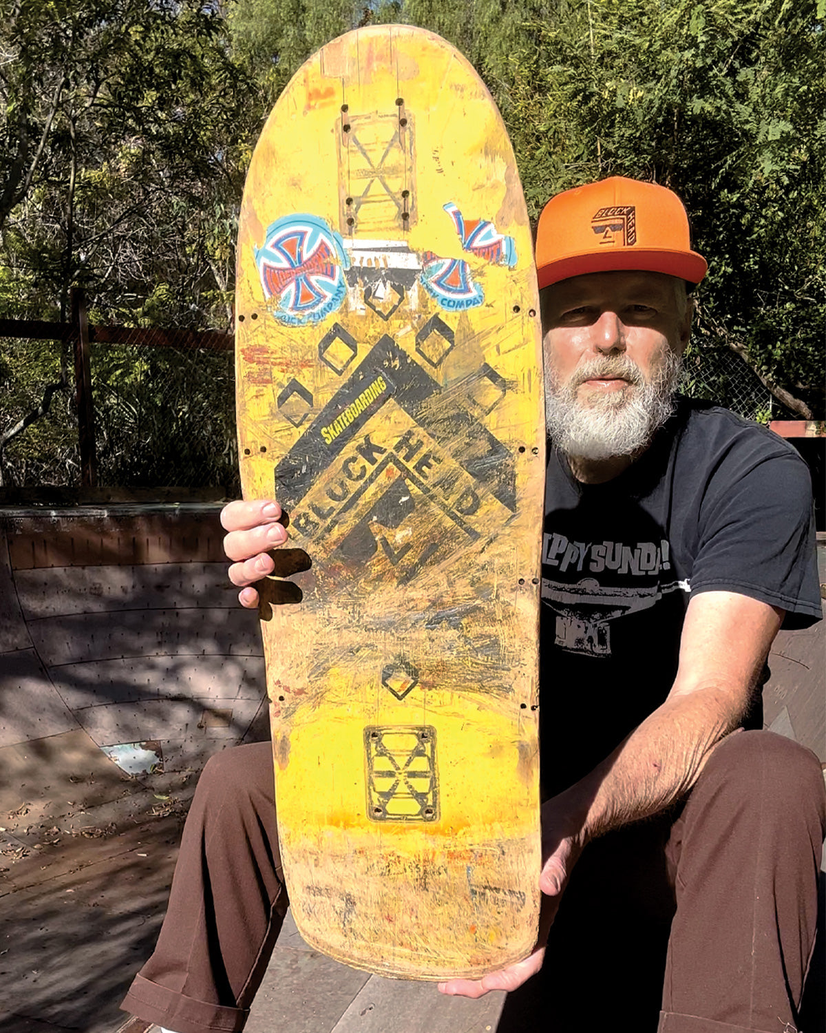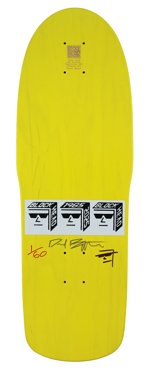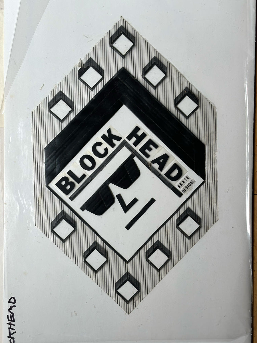 Here’s the board you never knew you needed because you never knew it existed. This is the earliest roots of Blockhead from late 1984 when we were prototyping shapes from Z-blanks I’d buy at Go Skate or reshaping old boards. The only prototype I have with the “Cubed” graphic is this one in the photo which I’m pretty sure that my younger brother Kevin cut down from an old Zorlac Double Cut board. I’m fairly certain Kevin cut it because it’s pretty damn wonky! Ha!